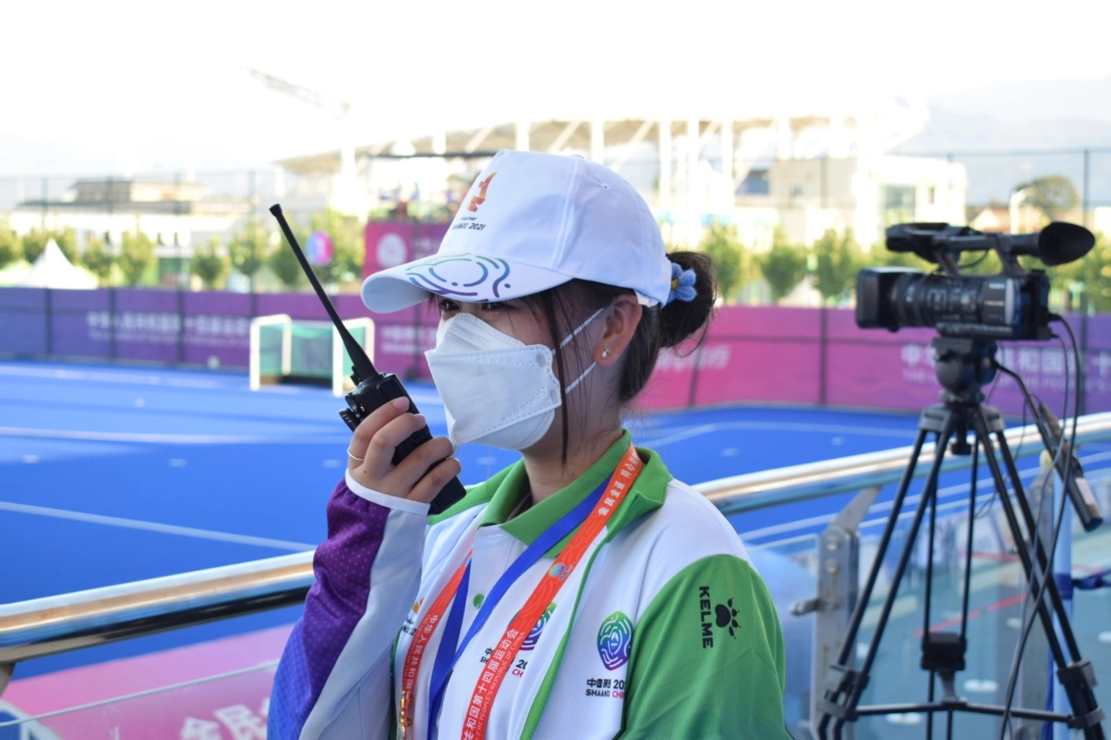 新媒体宣传小组的同学们注册了微信公众号“十四运曲棍球西石大小秦宝”、微信视频号“十四运西石大小秦宝”,在短短的十天里,已经推出了5篇公众号文章,分别是“西石大的小秦宝正式出征”、“曲棍球项目小秦宝们看西安‘闪耀全国’”、“西石大小秦宝服务风采展示”、“这儿有一封表扬信请及时签收”、“当十四运碰上中秋节”;录制、剪辑了3个视频号优质视频,分别是:“我们出征啦”、“志愿者的一天”、“当‘破壳日’撞上中秋节”,另外还有每天一篇新闻通讯稿和若干精美宣传照片,下岗之后回到志愿者之家拿起相机,再到各个岗位拍志愿者风采已经成了一种习惯。他们各尽其责全力做好十四运曲棍球项目的推广,让更多的人了解曲棍球,认识曲棍球,宣传西石大小秦宝的志愿风采,展示团结友爱互助进步的志愿者精神。除了用于文章推送的照片之外,新媒体宣传小组的同学暖心的为每位志愿者拍摄了一张个人工作照片,记录下他们为十四运做贡献的瞬间,为每个志愿者留下了一份宝贵的纪念。